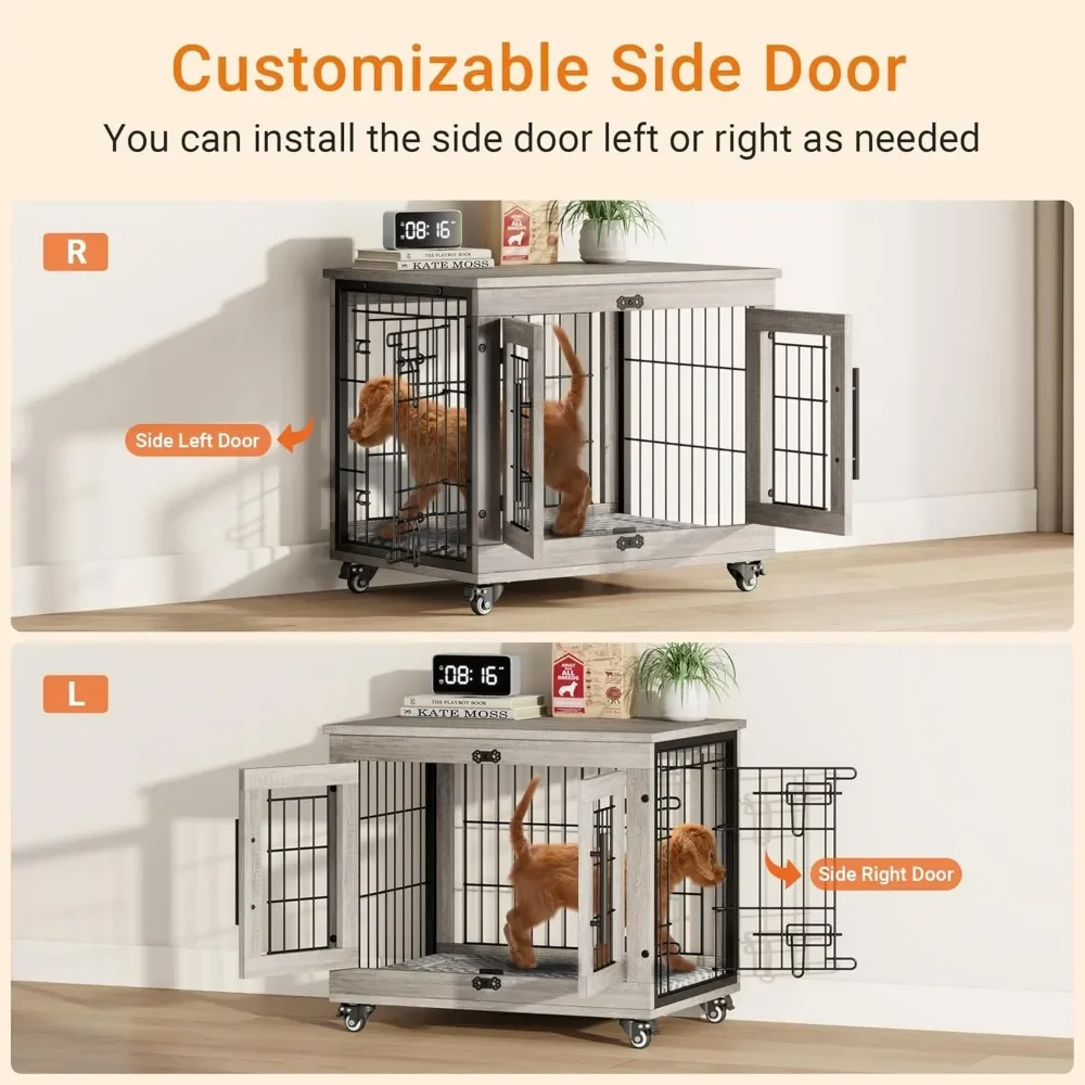- [Multi-Purpose Dog Kennel Furniture] Provide enough space for dogs to move around, play, and rest and also perfect as a side table or nightstand of storage needs for you. Wood dog crate will blend into any home decor, providing a combination of furniture and function for furry dogs while also being a space saver.