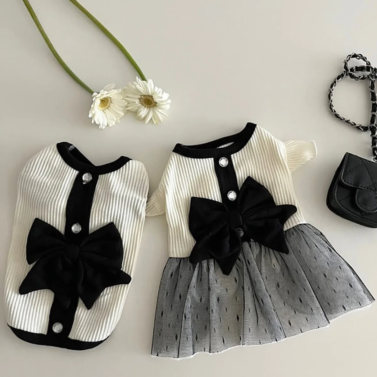 Spring Summer Thin Princess Dog Dress for Small Dog Clothes Bowknot Dog Vest Black & White Cat Clothes Cat Skirt Soft Pet Cloth