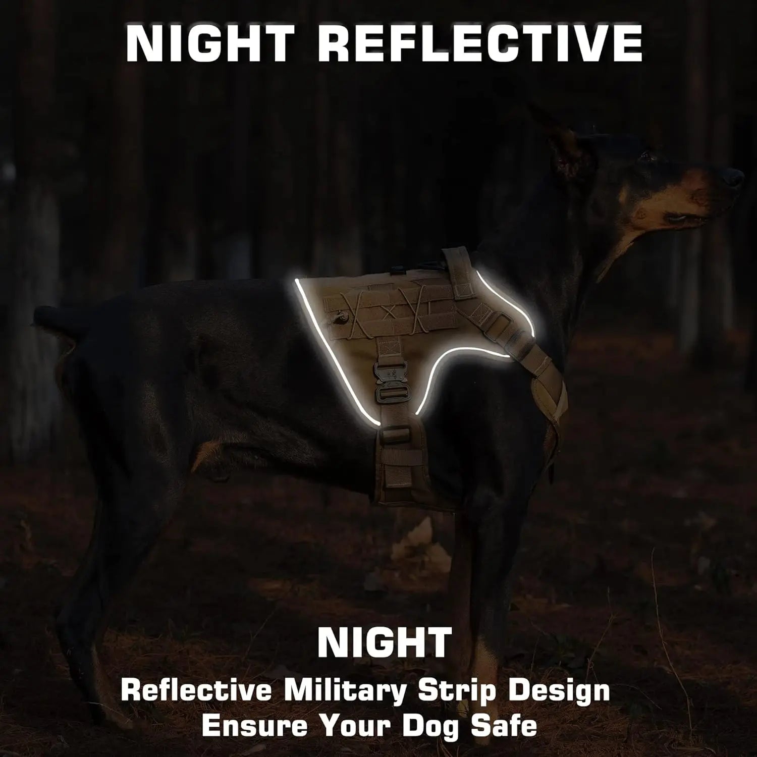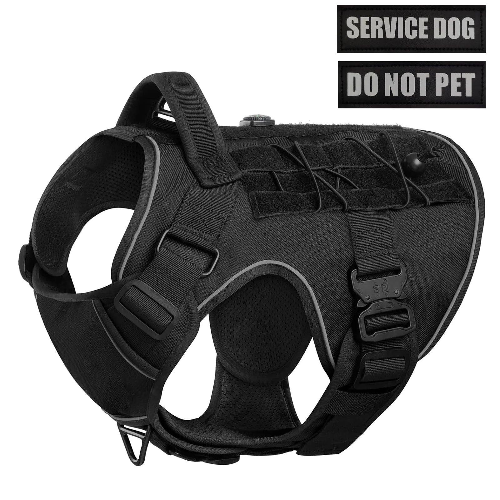 Tactical Dog Harness, two Metal Buckle Heavy Duty Dog Harness with Do Not Pet nameplate Patch, Reflective Military Dog Harness
